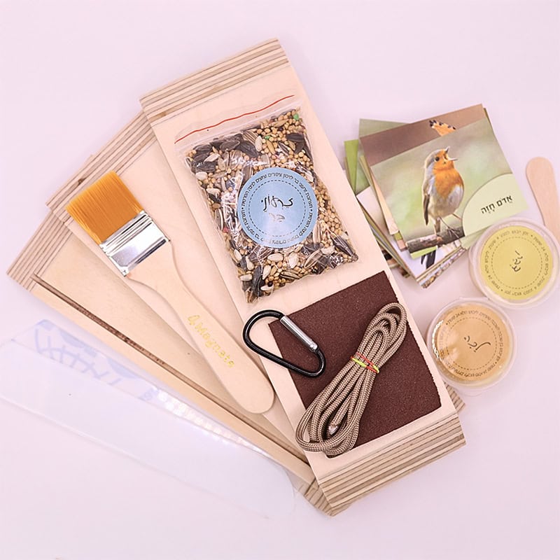 ערכת יצירה חוויתית לימודית בתוכה תמצאו כל מה שצריך כדי לבנות בעצמכם מתקן האכלה מעץ לציפורים,