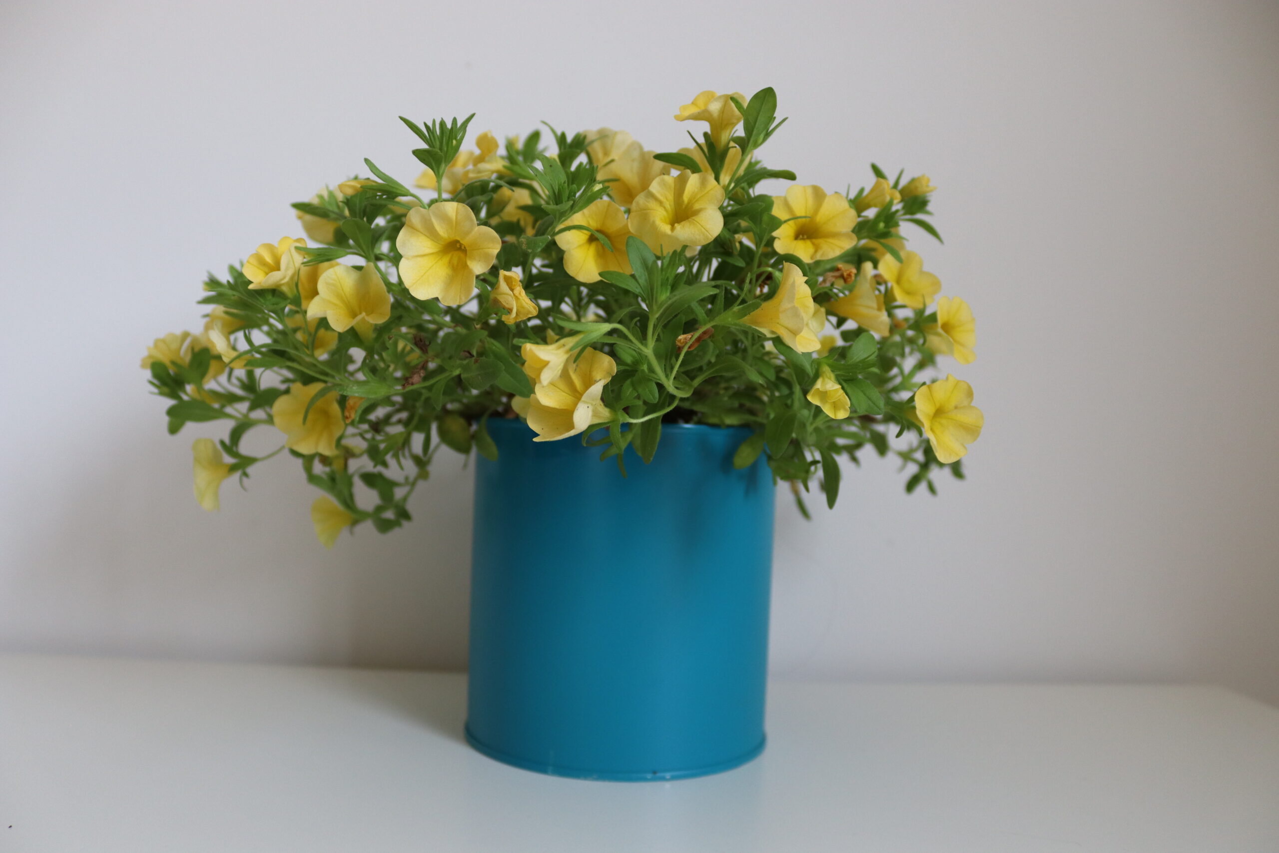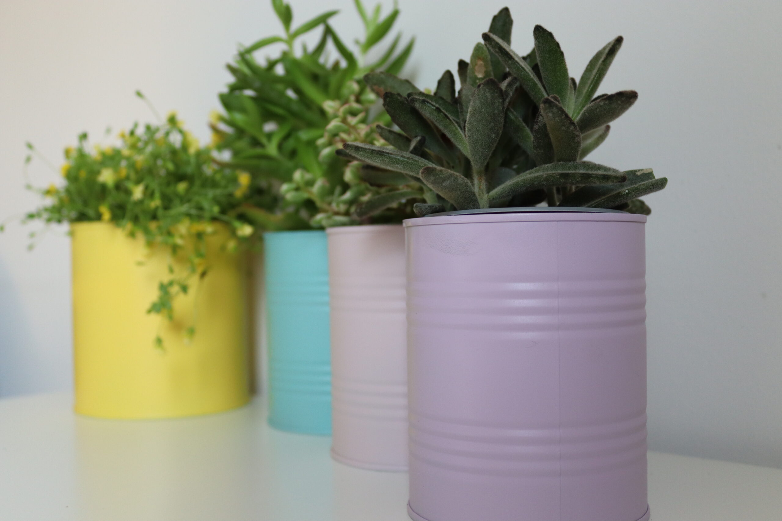 עציץ קטן מלא קסם, עשוי מקופסאות תמ"ל שקיבלו חיים חדשים.
